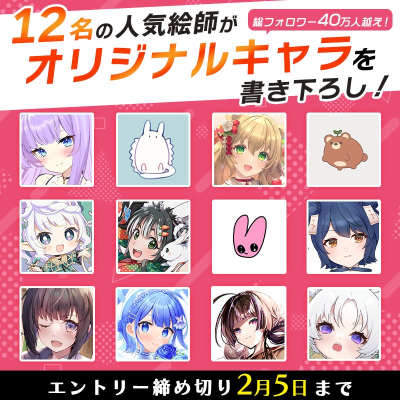 Twitterフォロワー総数40万人以上! キャラライブアプリ「IRIAM」内外で活躍する12名のイラストレーターに魅力的なキャラクター制作を担当していただきました。