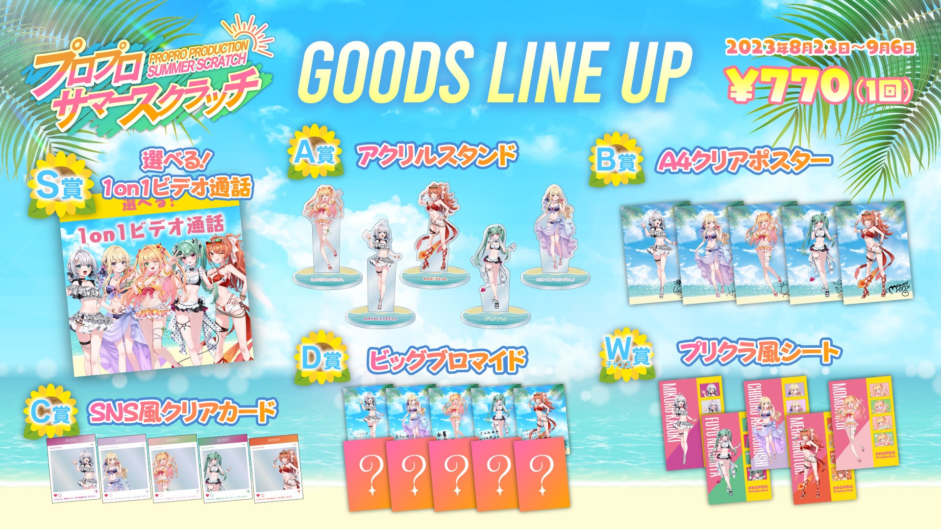 人気VTuber事務所「プロプロ」のサマースクラッチを8月23日(水)より発売開始!S賞はプロプロメンバーと1on1ビデオ通話など豪華景品も
