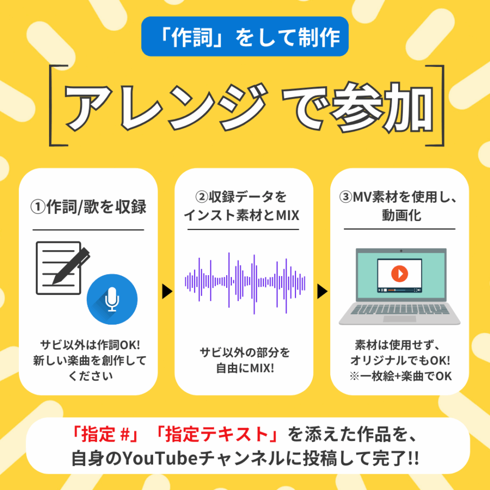 特定のアーティストが”メインパート”を歌唱し、それ以外のパートを様々なアーティストやクリエイターたちが自由に歌唱することで楽曲を生み出す、未来型共同創作スタイルです。