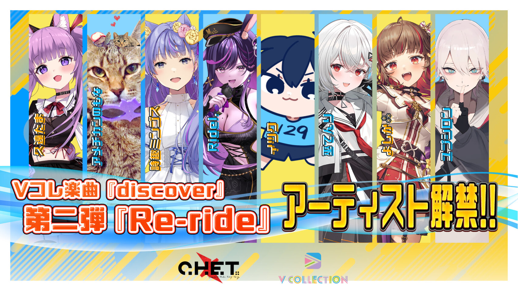 「誰もがアーティストになれる」というパーパスのもと、ユーザー参加型で新たなクリエイティブフォーマットを生み出すインキュベーション組織「 C.H.E.T.」から誕生した”V Collection(Vコレ)×えのぐ”楽曲第一弾「discover / えのぐ feat. C.H.E.T.」の追加Re-rideアーティストを公開いたしました。