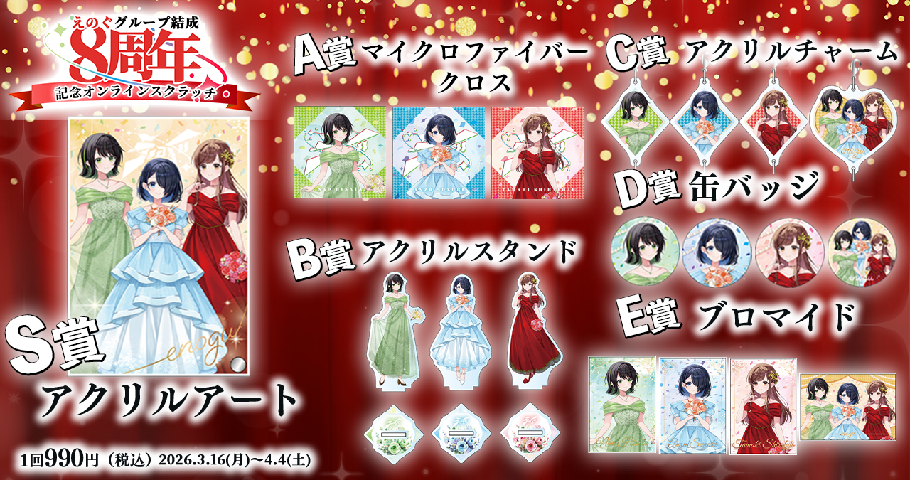 グループ結成8周年記念!VRアイドル「えのぐ」の限定グッズが必ず当たる“ハズレなし”オンラインくじが登場!